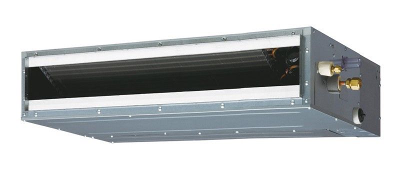 Средненапорные инверторные сплит-системы канального типа укомплектованы встроенным дренажным насосом и воздушными фильтрами тонкой очистки. Высокая энергоэффективность и гибкая самонастройка производительности обеспечивается инверторным управлением компрессором и вентиляторами наружногои внутреннего блоков. Благодаря компактным размерам и возможности монтажа как горизонтально, так и вертикально, внутренние блоки легко спрятать в небольшом запотолочном пространстве или в стеновой нише. Широкие возможности по регулировке давления вентилятора от 0 до 90 Па позволяют подключать воздуховоды большой протяженности. Сверхтонкие и тихие канальные кондиционеры прекрасно подходят как для кондиционирования жилых, так и офисных помещений.